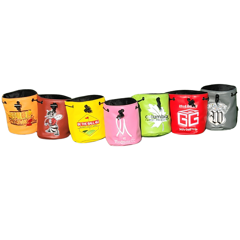 A ditty bag is an all leather, fleece-lined pouch while a utility bag is a 3-pocket golf bag made from ballistic material complete with a hook to hang your bag anywhere. Both bags are completely customizable with your logo, theme or whatever design you can think up. A Ditty bag is typically used to carry golf balls, tees, divot tools , ball markers or any other golf accessory. Our utility bags can be used for both golf accessories or your personal items that you want to keep safe while on the golf course.