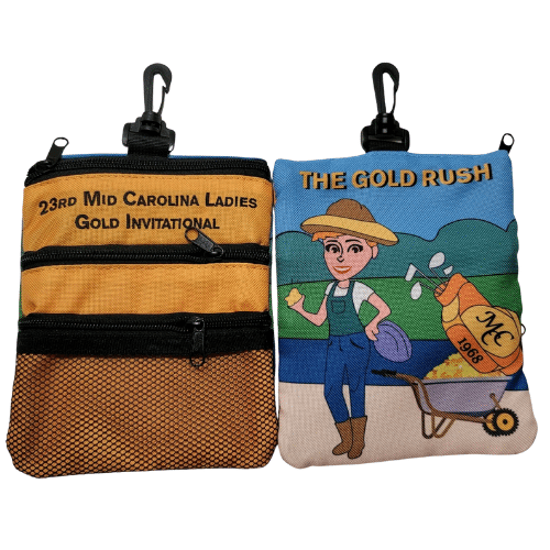 A ditty bag is an all leather, fleece-lined pouch while a utility bag is a 3-pocket golf bag made from ballistic material complete with a hook to hang your bag anywhere. Both bags are completely customizable with your logo, theme or whatever design you can think up. A Ditty bag is typically used to carry golf balls, tees, divot tools , ball markers or any other golf accessory. Our utility bags can be used for both golf accessories or your personal items that you want to keep safe while on the golf course.