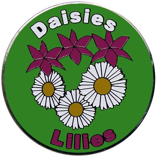 Daisies and Lilies ball marker is 24.5mm round (about the size of a quarter), is made of iron, and plated in nickel. Hand painted with raised metal, this colorful golf ball marker includes a matching magnetic hat clip. The hat clip has a strong magnet that keeps your ball marker in place until you are ready to remove it. Choose a light or dark green background. Choose a light background with or without genuine Swarovski crystals. Upgrade to a switchblade divot tool, necklace, divot tool hat clip, or shoe clip for a small additional charge. Wholesale pricing available.