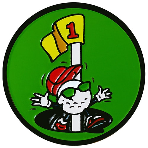 Hole in One Celebration golf ball markers are 24.5mm round, are made of iron, and plated in black nickel. Choose Hole in One Celebration Teena or Hole in One Celebration You Da Man. Each ball marker is hand painted with raised metal and include a matching magnetic hat clip. The hat clip has strong magnet that keeps your ball marker in place until you are ready to remove it. Upgrade to a switchblade divot tool, necklace, divot tool hat clip, or shoe clip for a small additional charge. Wholesale pricing available.