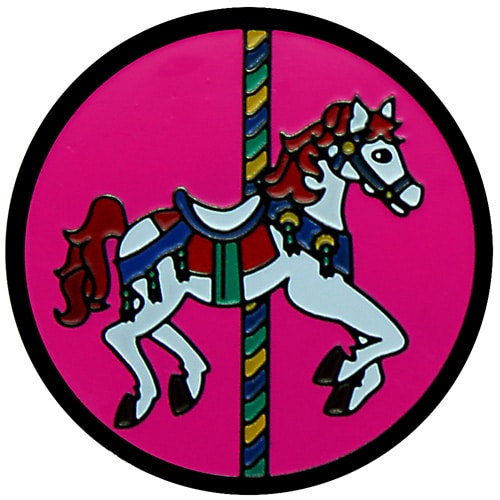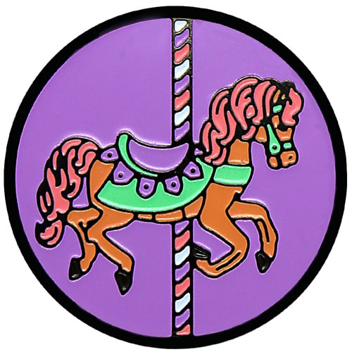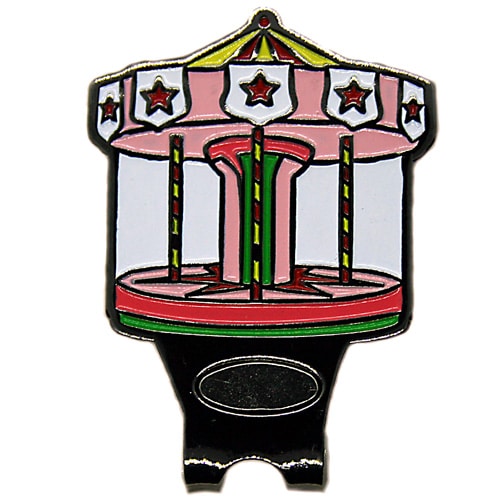 Merry golf ball markers are 24.5mm round (about the size of a quarter), are made of iron, and plated in black nickel. Hand painted with raised metal, these golf ball markers include a matching magnetic hat clip. The hat clip has a strong magnet that keeps your ball marker in place until you are ready to remove it. Choose blue, pink, green, or lavender background colors. Upgrade to a switchblade divot tool, necklace, divot tool hat clip, or shoe clip for a small additional charge. Wholesale pricing available.