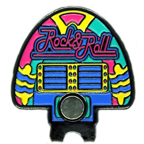 Swarovski Jukebox Ball Marker is a great gift for any avid golfer. This fun ball marker is 33mm authentically shaped, is made of iron, and plated in black nickel. Hand painted with raised metal, and adorned in beautiful genuine Swarovski crystals, the ball marker includes a matching hat clip. The hat clip has a strong magnet that keeps your ball marker in place until you are ready to remove it. Upgrade to a switchblade divot tool, necklace, divot tool hat clip, or shoe clip for a small additional charge. Wholesale pricing available.