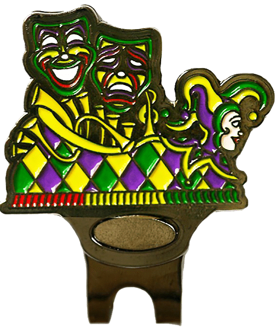 Swarovski Owl Mask Ball Marker is a great gift for any avid golfer. This fun Mardi Gras themed ball marker is 24.5mm round (about the size of a quarter), is made of iron, and plated in black nickel. Hand painted with raised metal, and adorned in beautiful genuine Swarovski crystals, the ball marker includes a matching hat clip. The hat clip has a strong magnet that keeps your ball marker in place until you are ready to remove it. Upgrade to a switchblade divot tool, necklace, divot tool hat clip, or shoe clip for a small additional charge. Wholesale pricing available.