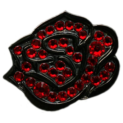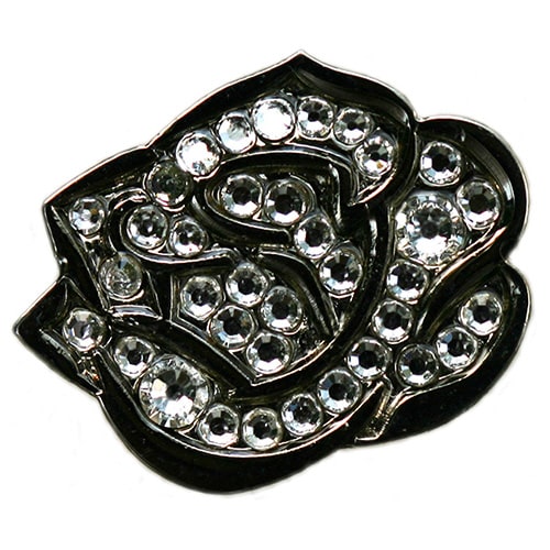 Swarovski Rose Ball Markers is a great tournament gift idea for any avid golfer. Make the golf game fun and sophisticated with this awesome ball marker that is 24.5mm authentically shaped, is made of iron, and plated in nickel or black nickel. Adorned in beautiful genuine Swarovski crystals, the ball marker includes a matching hat clip. Choose your favorite colors -clear, yellow, red, dark red, fuchsia, light pink, carnation, or dark pink. The hat clip has a strong magnet that keeps your ball marker in place until you are ready to remove it. Upgrade to a switchblade divot tool, necklace, divot tool hat clip, or shoe clip for a small additional charge. Wholesale pricing available.