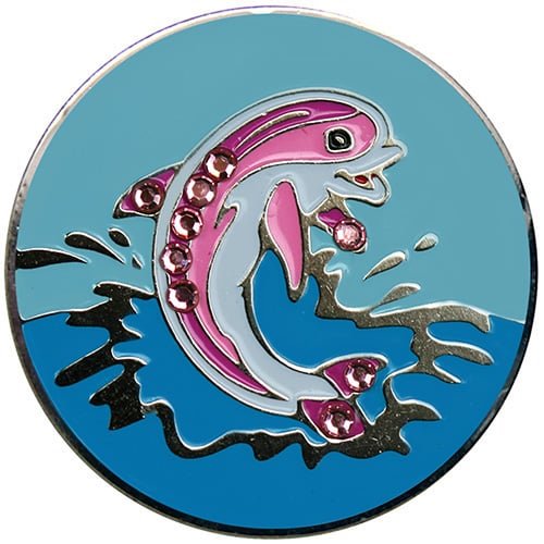 This adorable golf ball marker is 24.5mm round (about the size of a quarter), is made of iron, and plated in nickel. Hand painted with raised metal, this golf ball marker includes a matching magnetic hat clip. The hat clip has a strong magnet that keeps your ball marker in place until you are ready to remove it. Upgrade to a switchblade divot tool, necklace, divot tool hat clip, or shoe clip for a small additional charge. Wholesale pricing available.
