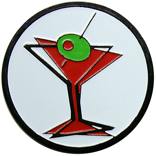 This refreshing ball marker is 24.5mm round (about the size of a quarter), is made of iron, and plated in black nickel. Hand painted with raised metal, this golf ball marker includes a matching magnetic hat clip. The hat clip has a strong magnet that keeps your ball marker in place until you are ready to remove it. Upgrade to a switchblade divot tool, necklace, divot tool hat clip, or shoe clip for a small additional charge. Wholesale pricing available.