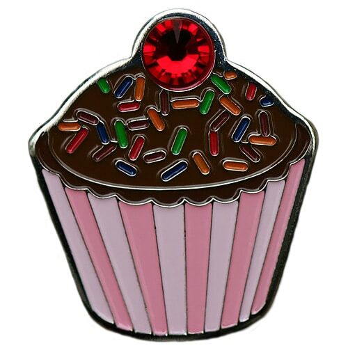 Hail to the Cocoa Bean Cupcake ball marker is approximately 24.5mm, is made of iron, and plated in nickel. Hand painted with raised metal, this authentically shaped golf ball marker includes a matching magnetic hat clip. The hat clip has strong magnet that keeps your ball marker in place until you are ready to remove it. Add beautiful Swarovski crystals for a minimum charge. Choose to upgrade to a switchblade divot tool, necklace, divot tool hat clip, or shoe clip for a small additional charge. Wholesale pricing available.