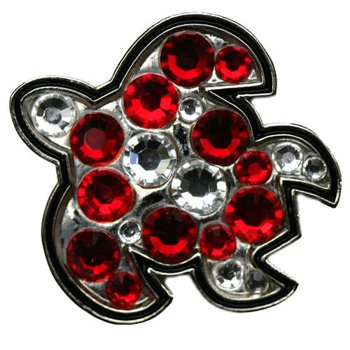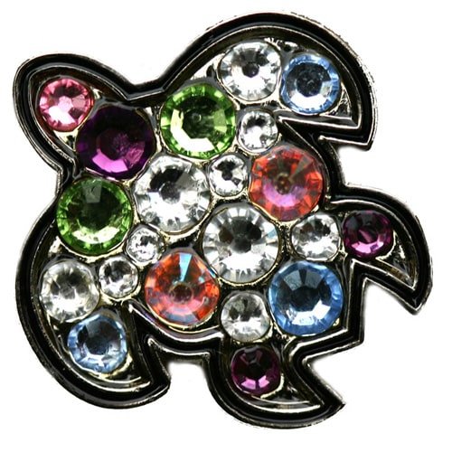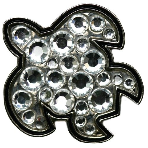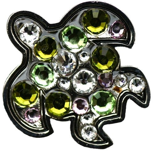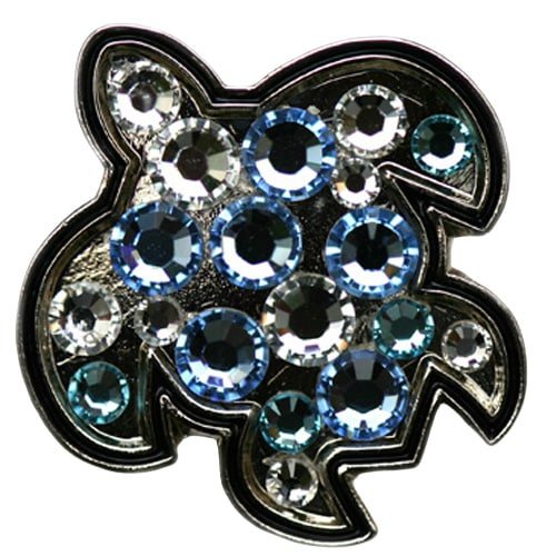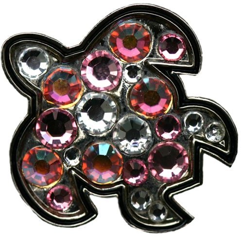 Swarovski Turtle Ball Markers are a great tournament gift idea for any avid golfer. Make the golf game fun and sophisticated with this awesome ball marker that is 24.5mm authentically shaped, made of iron, and plated in nickel. Adorned in beautiful genuine Swarovski crystals, the ball marker includes a matching hat clip. Choose your favorite colors -Dark Blue, Baby Blue, Clear, Emerald, Pink, Light Green. The hat clip has a strong magnet that keeps your ball marker in place until you are ready to remove it. Upgrade to a switchblade divot tool, necklace, divot tool hat clip, or shoe clip for a small additional charge. Wholesale pricing available.