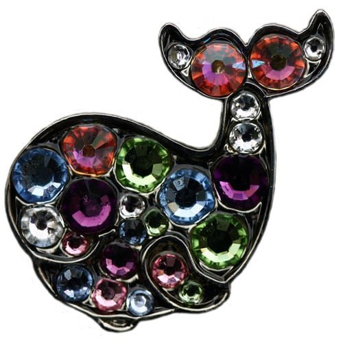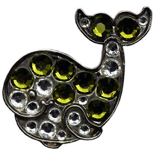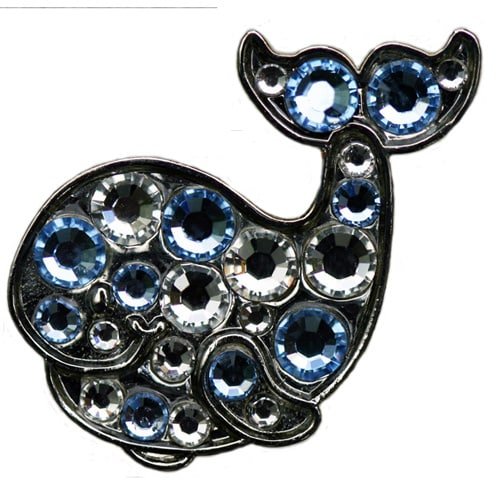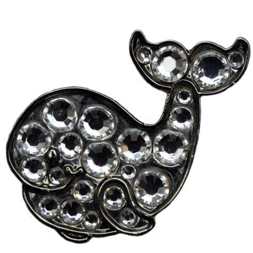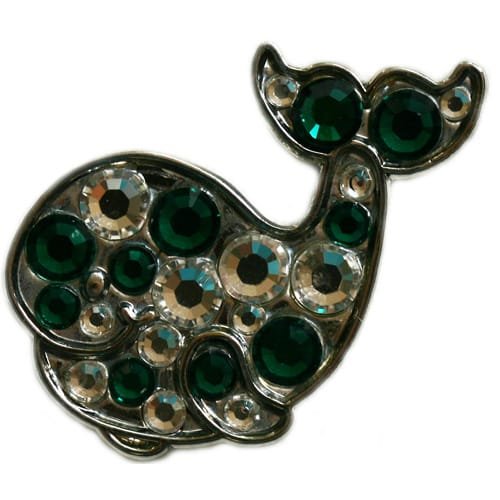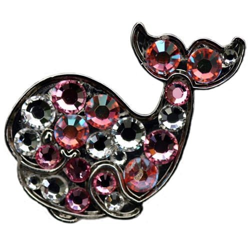 Swarovski Whale Ball Markers are a great tournament gift idea for any avid golfer. Make the golf game fun and sophisticated with this awesome ball marker that is 24.5mm authentically shaped, made of iron, and plated in nickel. Adorned in beautiful genuine Swarovski crystals, the ball marker includes a matching hat clip. Choose your favorite colors -Dark Blue, Baby Blue, Clear, Emerald, Pink, Light Green. The hat clip has a strong magnet that keeps your ball marker in place until you are ready to remove it. Upgrade to a switchblade divot tool, necklace, divot tool hat clip, or shoe clip for a small additional charge. Wholesale pricing available.